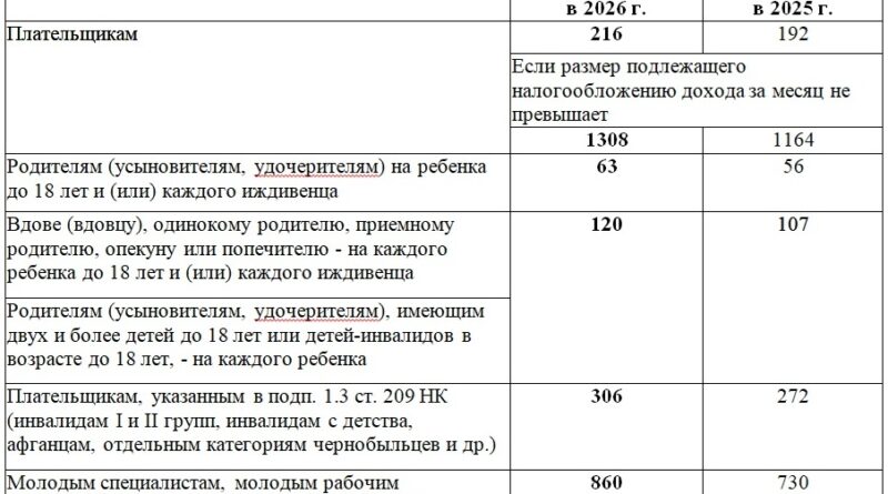 С 01.01.2026 произошли изменения в правилах предоставления налоговых вычетов, увеличены размеры стандартных вычетов (пункт 1 статьи 209 Налогового кодекса Республики