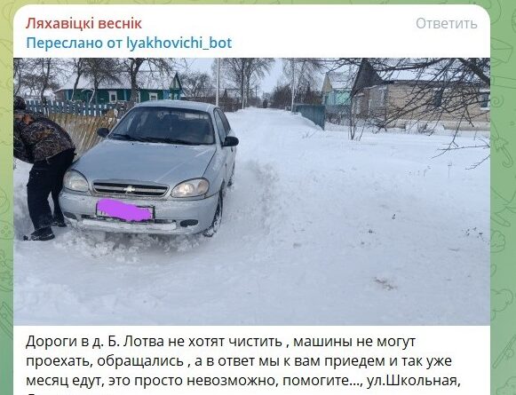 У чат-бот тэлеграм-канала «Ляхавіцкі веснік» жыхарка Малога Гарадзішча даслала фотаскаргу на дарогі “аквагарадка”. На здымках вуліцы Маладзёжная і Камсамольская. На