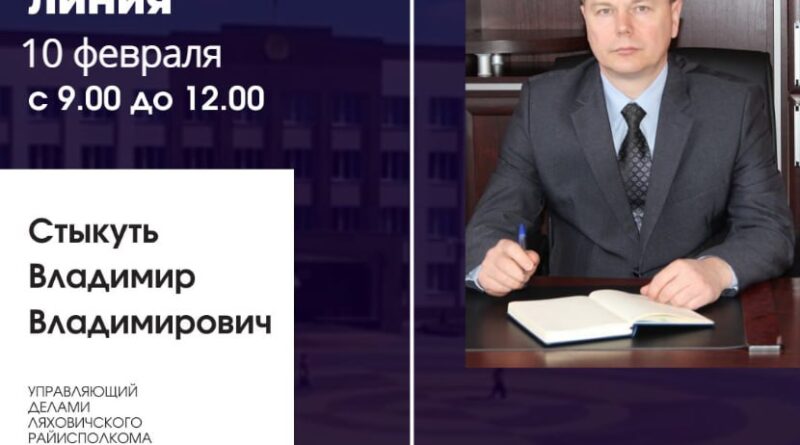 14 марта с 12.00 до 14.00 выездной приём граждан и прямую телефонную линию в Ляховичском райисполкоме проведёт заместитель начальника Брестской