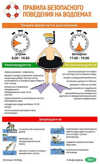 Read moreБЕЛТА Лучшее время суток для купания: утром — 8.00 — 10.00, вечером — 17.00 — 19.00. Рекомендуется: перед купанием —