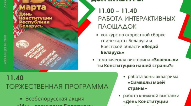 Read more15 сакавіка – Дзень Канстытуцыі Рэспублікі Беларусь Гэты тыдзень у школах раёна праходзіць пад знакам юбілейнага Дня Канстытуцыі. Паважаць Асноўны
