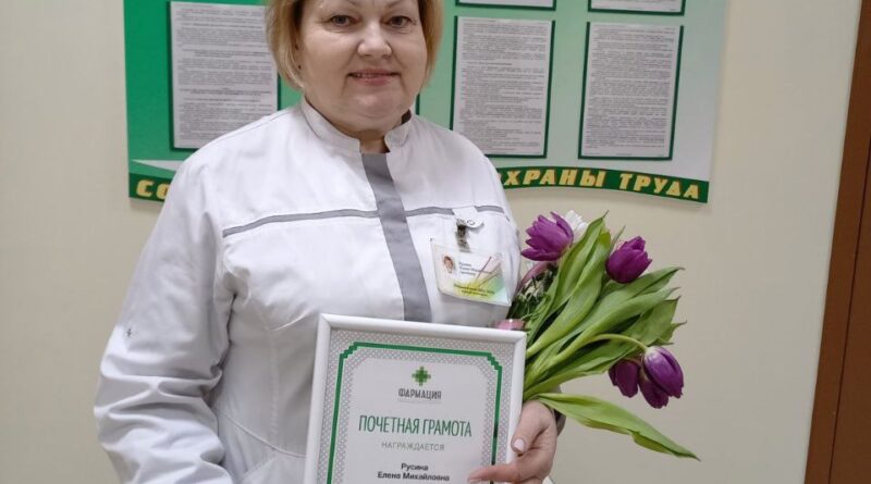Провизор-рецептар Ляховичской центральной районный аптеки Елена Русина награждена Почетной грамотой Брестского РУП «Фармация» за многолетний, добросовестный труд в деле лекарственного