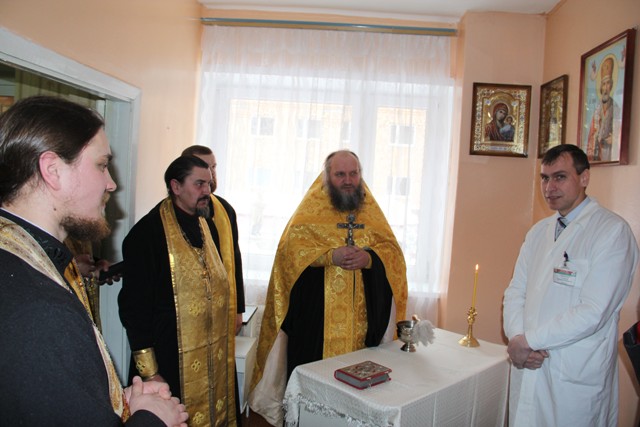 Напрыканцы богаслужэння протаіерэй Георгій Жытко звярнуўся да прысутных са словамі віншавання, падкрэсліўшы значнасць гэтай справы. Ён падзякаваў кіраўніцтву раёна, бальніцы за дадзеную магчымасць адкрыць малельны пакой.