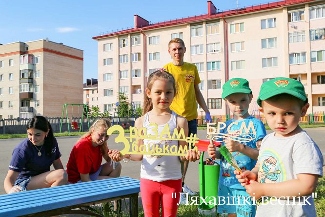 Ляхавіцкі райкам БРСМ удзячны камунальнікам за прадастаўленыя матэрыялы, татам і мамам – за актыўнасць і нераўнадушнасць. Дзякуючы сумеснай працы, дзіцячая пляцоўка зайграла яркімі фарбамі.