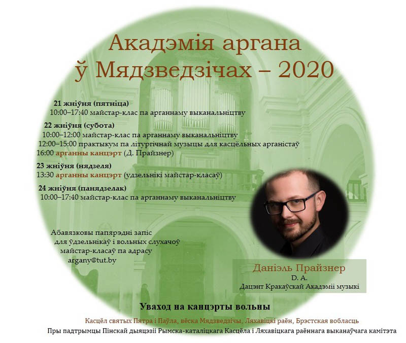 Культура Навіны У Ляхавіцкім раёне адбудуцца майстар-класы па арганным выканальніцтве 21/08/2020 189 redakcyja