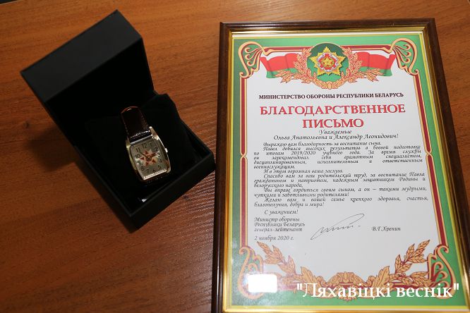 Семья ляховичан за воспитание сына удостоена Благодарственного письма министра обороны Республики Беларусь
