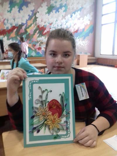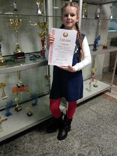 У намінацыі «сучасныя напрамкі: квілінг, арыгамі, скрапбукінг» Ангеліна Трыбух узнагароджана дыпломам III ступені галоўнага ўпраўлення па адукацыі аблвыканкама.