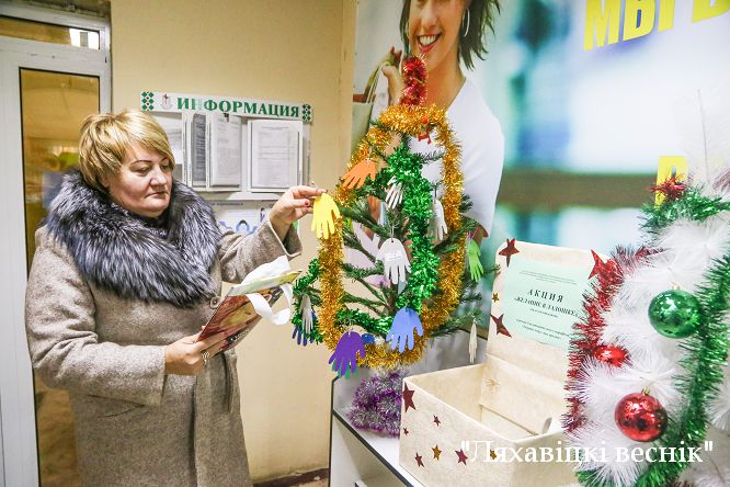 Зрабіць маленькае свята для асаблівых рабят па сілах кожнаму – толькі патрабуецца выбраць адрасата, пазначанага на далоньцы, і навагодні падарунак пакласці ў скрыню, размешчаную каля ёлачкі. Спагадлівых і добрых землякоў многа, і праз нейкі час на навагоднім дрэўцы не застанецца адбіткаў маленькіх далонек, а незнаёмыя хлопчыкі ці дзяўчынкі павераць у самага лепшага Дзеда Мароза.