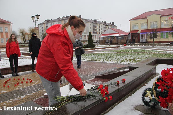 В Ляховичах активисты БРСМ и члены Молодёжного парламента возложили цветы к памятнику на площади Победы