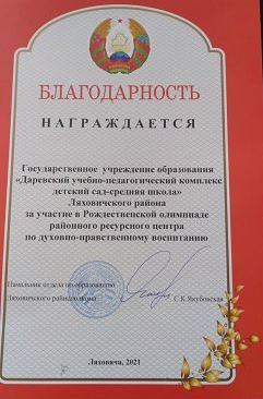 Призёром Рождественской олимпиады названа учащаяся Даревской школы Арина Бречко, а лучшее сочинение у Арины Бардашевич из Начевской СШ.