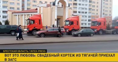 В барановичский ЗАГС приехал свадебный кортеж из тягачей