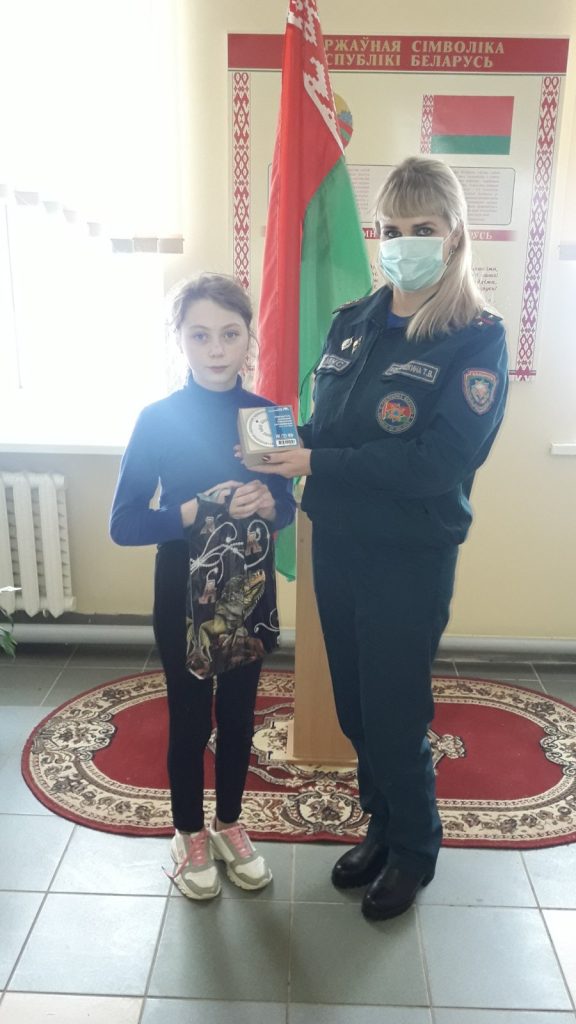 Работники Ляховичского районного отдела по чрезвычайным ситуациям отправились в Начевскую СШ, чтобы вручить заслуженный приз победительнице конкурса «Безопасный Дед Мороз» Милане Силицкой. Пятиклассница Милана рассказала, что она проживает в небольшой деревне в частном доме. Родители девочки заботятся о безопасности своей семьи, поэтому у них в каждой комнате установлен автономный пожарный извещатель. А Милана позаботилась о безопасности одиноко проживающей пожилой соседки. У бабушки отсутствует в доме автономный пожарный извещатель. Желание исполнилось! Инспектор сектора пропаганды Ляховичского районного отдела по чрезвычайным ситуациям Татьяна Колгушкина наградила заботливую девочку подарками, и вручила главный приз «Автономный пожарный извещатель».