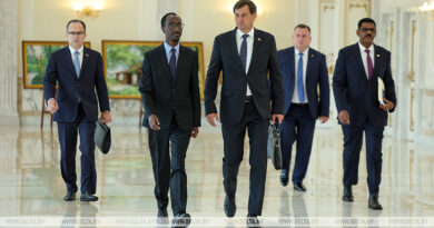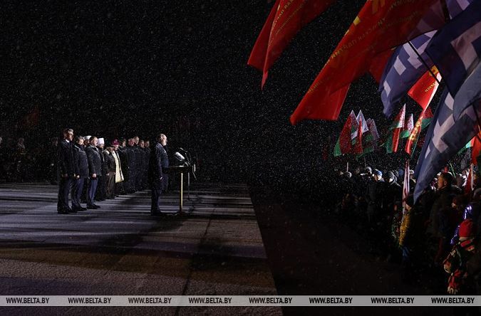 Сначала Президент возложил цветы к памятнику Непокоренному человеку. После просмотра литературно-музыкальной композиции состоялась церемония возложения цветов к Вечному огню.