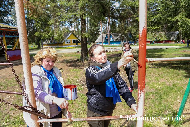 На працягу некалькіх гадзін жанчыны прыбіралі тэрыторыю летніка і наводзілі чысціню ў карпусах, фарбавалі надворнае абсталяванне.