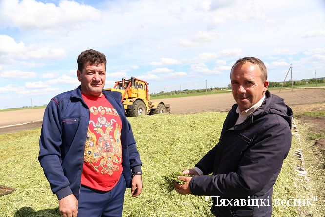 Задача – убраць на сянаж старыя гектары свірэпіцы і азімых зерневых, а на іх месцы ўкараніць кукурузу. Пачалі на пачатку тыдня. Некалькі часу пайшло на касьбу і прасушку скошанага, каб ужо ў аўторак дэбютаваць з закладкай двухкампанентнай сянажнай масы ў траншэйныя сховішчы.