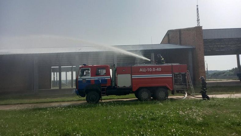 Па тактычнай задуме вучэнняў загарэлася другая секцыя шохі № 3, а там захоўваецца да тысячы тон ільнотрасты. З улікам напрамку ветру і фронту пажару склалася пагроза ўзгарання ў суседніх секцыях і шохах.
