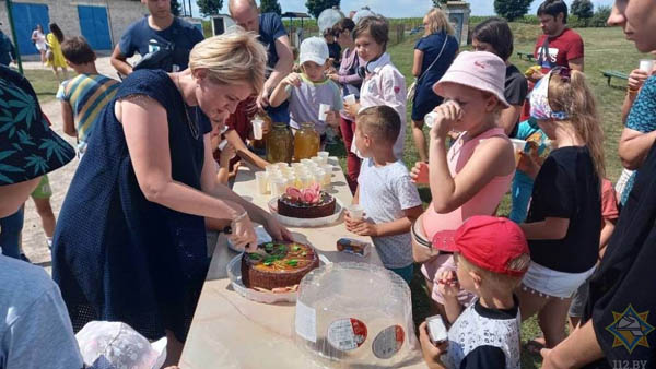 Спасатели угостили всех вкусной полевой кашей, чаем. Для детей была организована развлекательная программа с аниматором, ребят порадовали спортивные мероприятия, игры на надувном батуте,после чего их угостили вкусным тортом.
