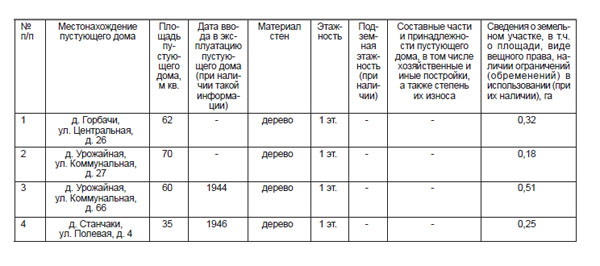 Сведения о пустующих домах, подлежащих включению в реестр учёта пустующих и ветхих домов, находящихся на территории Ляховичского района