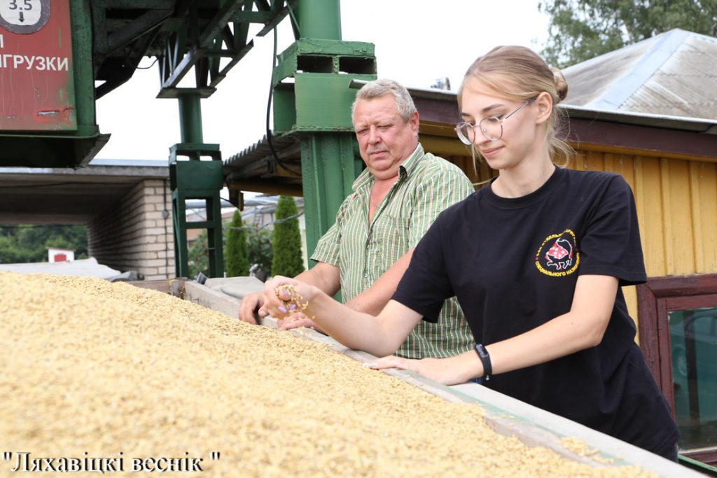 – Толькі што завяршылі загрузку чыгуначнага вагона. Чарговыя каля 70 тысяч тон жыта ўраджаю мінулага года адпраўлены ў Мінск. Летась зерне было прынята, дапрацавана, працяглы час захоўвалася. І вось прадаём. Участак мае ўласныя, у тым ліку і тэхнічныя, магчымасці для ажыццяўлення вагонапагрузачных работ, – растлумачыла кладаўшчык Кацярына Снацкая.