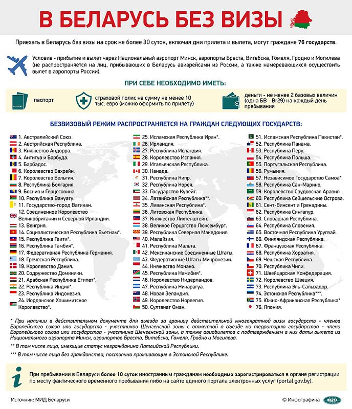 Грамадства Приехать в Беларусь без визы на срок не более 30 суток, включая дни прилета и вылета, могут граждане 76 государств 20/10/2021 128 redakcyja