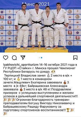 Чарговы раз сярод лепшых айчынных спартсменаў прагучалі прозвішчы і выхаванцаў Ляхавіцкай СДЮШАР. Сярэбраны медаль у вагавай катэгорыі звыш 100 кілаграмаў у нашага земляка Уладзіслава Цярпіцкага.