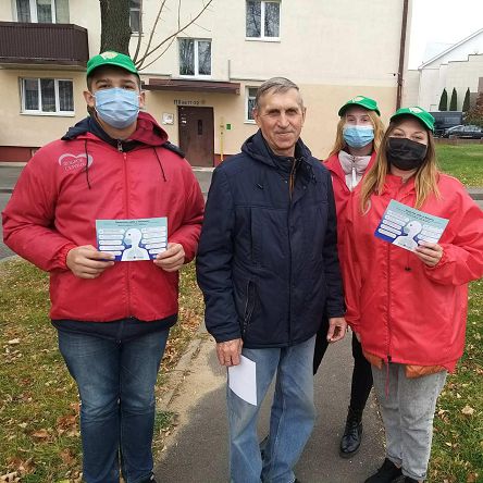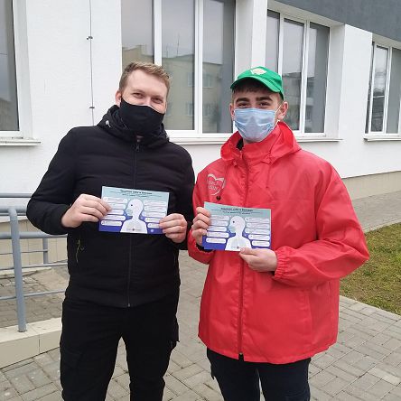 Валанцёры Ляхавіцкага аграрнага каледжа працуюць у месцах масавага знаходжання людзей. Мэта такой вахты, расказвае першы сакратар райкама БРСМ Дар’я Марозава, – інфармацыйна-прафілактычная: нагадаць землякам пра неабходнасць выканання санітарна-эпідэміялагічных правілаў і пра плюсы вакцынацыі. У дадатак да карыснай размовы юнакі і дзяўчаты ўручаюць прахожым тэматычныя памяткі, дзе падрабязна выкла-дзена, як абараніць сябе і сваіх блізкіх ад захворвання.
