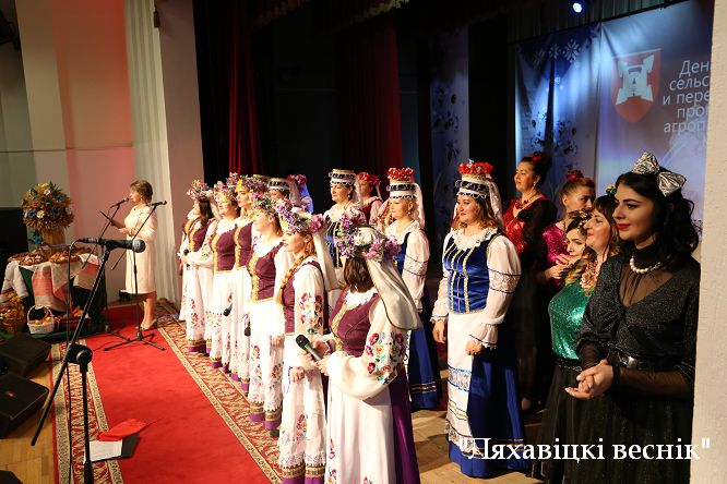 Час падводзіць ураджайныя вынікі. Багатая, прыгожая, нават на выгляд смачная – красавалася на святочнай сцэне ўраджайная інсталяцыя, у цэнтры – пшаніца, хлеб як сімвал заўсёднага жыцця. Румяны каравай ураджаю 2021 года ўручылі кіраўніку раёна Мікалаю Марозу. Няхай наш ляхавіцкі каравай з кожным годам становіцца больш важкім, дорыць нам здароўе і праслаўляе раён.