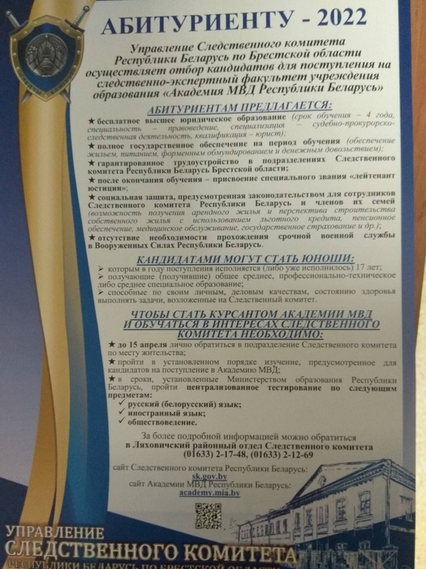 Академия МВД Республики Беларусь приглашает абитуриентов