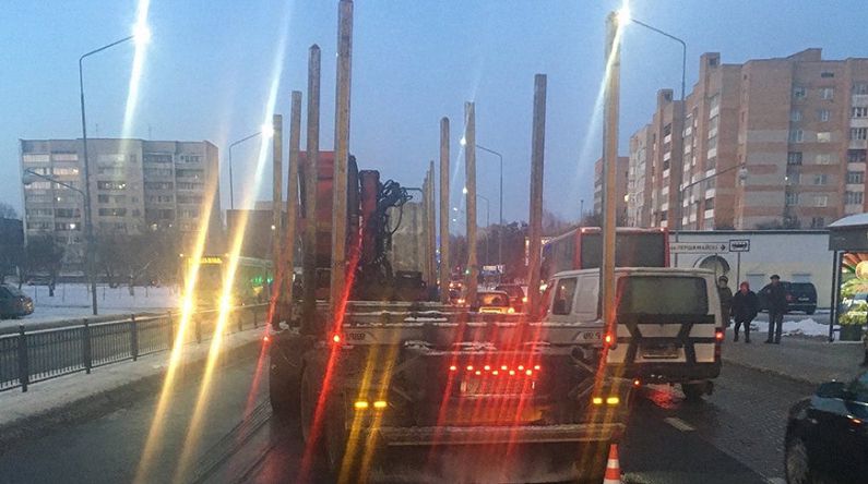 Лесовоз и четыре легковушки попали в аварию в Пинске