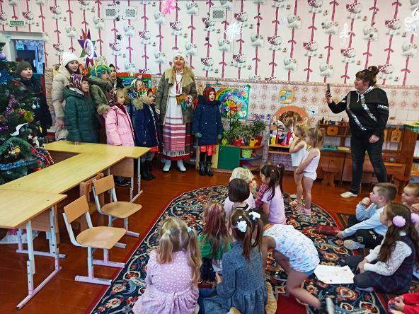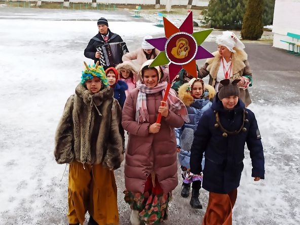 Традыцыі продкаў зберагаем, усiх з Калядкамi вiтаем. Тэатралiзаваным прадстаўленнем «Ехала каляда ў чырвоным вазочку» фальклорнае аматарскае аб’яднанне «Купалiнка»