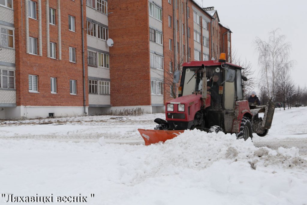 КУМВП ЖКГ «Ляхавіцкая ЖКГ» Уладзіміра Несцяровіча, убіраць снег пачалі з цэнтральных вуліц з цвёрдым пакрыццём, працягвалі па Дзесюкевіча, Камсамольскай, Янкі Купалы, Кастрычніцкай і г. д. Далей пайшоў прыватны сектар ад Энергетыкаў і Юбілейнай да Кальцавой і Дружнай, іншыя вуліцы. Ачышчалі і пасыпалі супрацьгалалёднай сумессю паркоўкі, падыходы да пешаходных пераходаў і самі «зебры», аўтобусныя прыпынкі, тратуары. За няпоўныя тры дні на апрацоўку гарадскіх вуліц і дарог пайшло 32 тоны салянай сумесі.