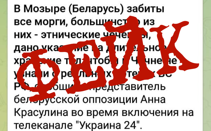 Сегодня на подобные «новости» уже никто не клюнет, да и повестка дня стала другой. И телеграм-помойки тут же на нее откликнулись новой страшилкой – о забитых трупами моргах Мозыря. Информацию якобы полученную «из достоверных источников» озвучила представитель беглых Анна Красулина в прямом эфире телеканала «Украина 24», уточнив, что это не просто трупы, а погибшие чеченцы… И вот уже оппопомойки с радостью подхватили «жареную» новость, разнося ее по просторам интернета.