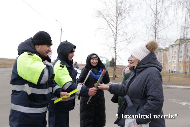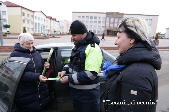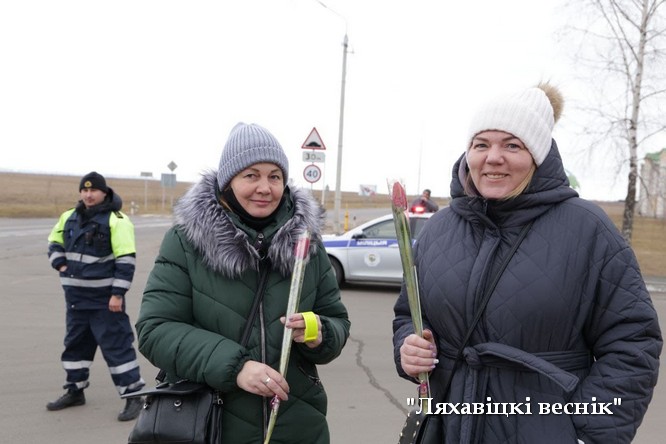 В Ляховичах цветами и искренними пожеланиями поздравили землячек с Днём женщин сотрудники ОГАИ и председатель районной организации «Белорусский союз женщин»