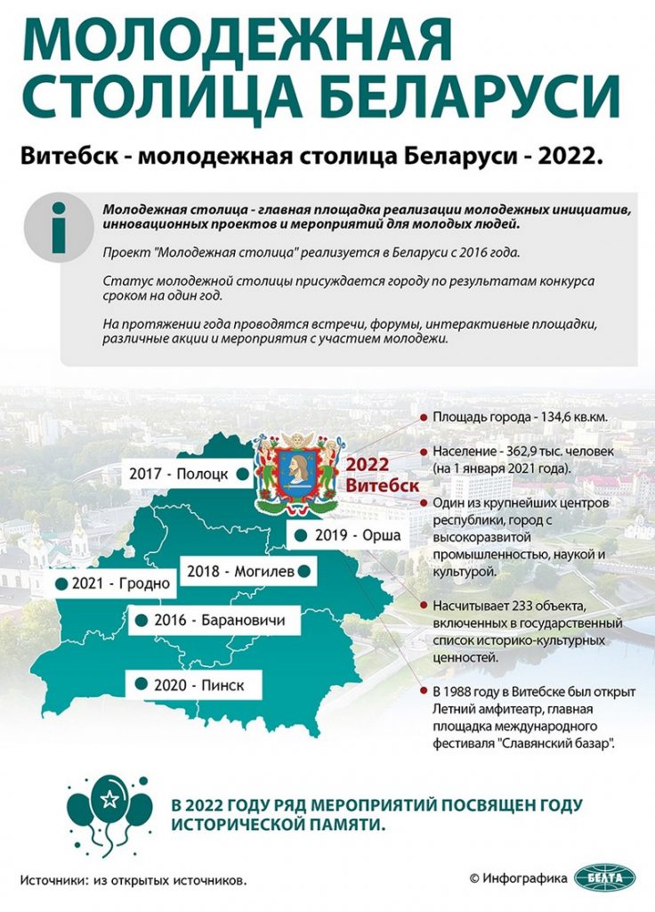 Витебск – седьмой город, который удостоился высокого статуса. Реализовать себя молодые люди могут в самых разных сферах. И это показали на презентации молодёжных инициатив. Для людей искусства — крупные фестивали, в том числе Славянский базар. Кто делает ставку на науку, отрыты двери лабораторий вузов. Активно внедряются проекты социальные, образовательные, международные – только в Витебске обучаются несколько тысяч иностранных студентов.