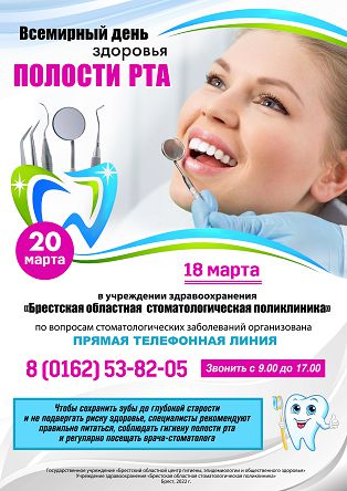 18 марта 2022 года Вы можете получить консультационную помощь по вопросам профилактики и лечения заболеваний полости рта у специалистов УЗ «Ляховичская ЦРБ» с 8.00 до 16.00 по телефону 8(01633) 6-07-26.