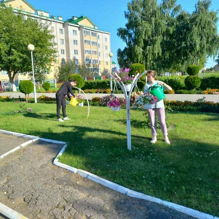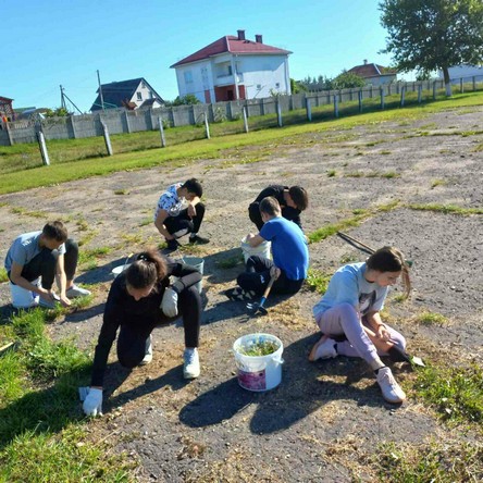 ❇️ Ребята благоустраивали пешеходные дорожки, волейбольную и баскетбольную площадки, поливали и ухаживали за растениями, наводили чистоту на территории учреждения образования, собирали смородину в школьном саду.