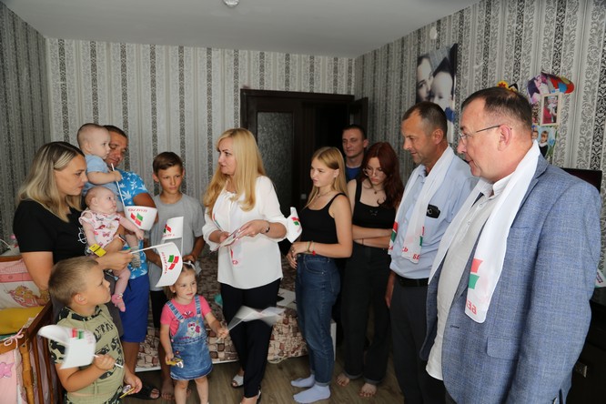 У складзе віншавальнай дэлегацыі – і інспектар РАНС Аляксей Клетаніца: бяспека – важны момант жыццядзейнасці сем’яў, дзе выхоўваюцца непаўналетнія. Выратавальнік правёў прафілактычную тэматычную гутарку, прывёў прыклады важнасці аўтаномнага пажарнага апавяшчальніка.