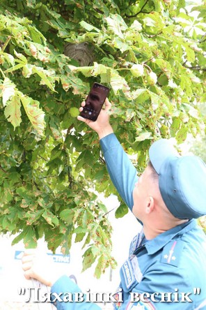 В центре города Ляховичи спасатели ликвидировали осиное гнездо.