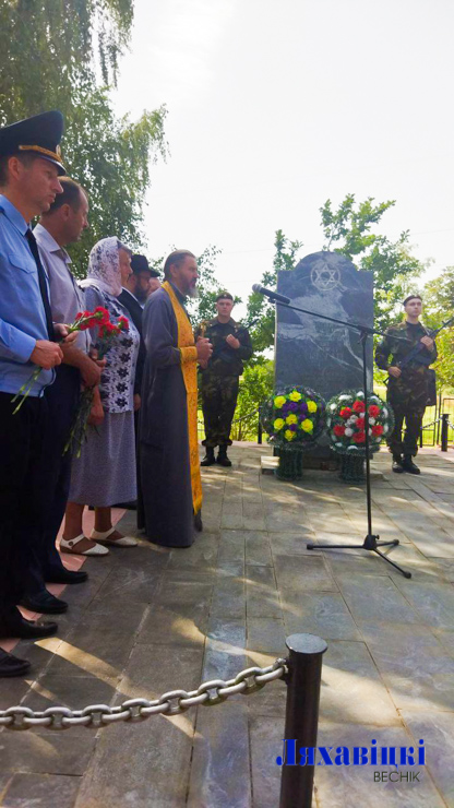 Церемония перезахоронения на улице Западной в г.Ляховичи на месте массового захоронения жертв войны уже началась.