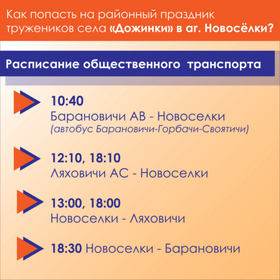 Навіны Сельская гаспадарка Как попасть на районный праздник тружеников села «Дожинки» в аг. Новосёлки? 24/08/2022 392 redakcyja
