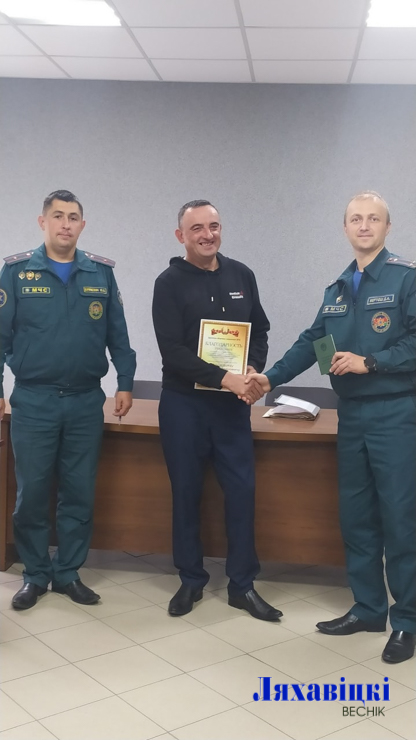 Спасатель неоднократно награждался нагрудными знаками, грамотами и благодарностями. Вот и в день выхода на пенсию ему объявлена благодарность начальника Брестского областного управления МЧС, вручены памятные подарки, слова уважения и благодарности за службу от личного состава отдела.