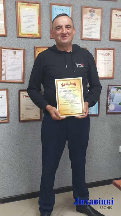 Василий Иванович посвятил службе на пожарном посту в должности командира отделения Ляховичского районного отдела по чрезвычайным ситуациям 28 лет своей жизни. За долгие годы службы он с достоинством прошел испытания на мужество и стойкость, проявив свои лучшие качества. Зарекомендовал себя честным, целеустремленным и по-настоящему преданным пожарному делу работником, никогда не теряющим самообладания при встрече с опасностью. Он добросовестно трудился и вдохновлял своим примером молодежь, преодолевал трудности и самосовершенствовался, стал настоящим специалистом своего дело.