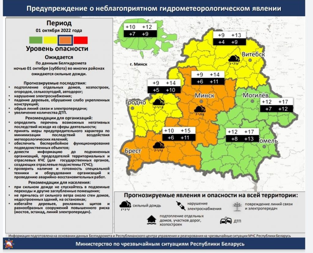 Служба 101 МЧС предупреждает. Оранжевый уровень опасности объявлен в Беларуси из-за сильных дождей 30/09/2022 234 redakcyja