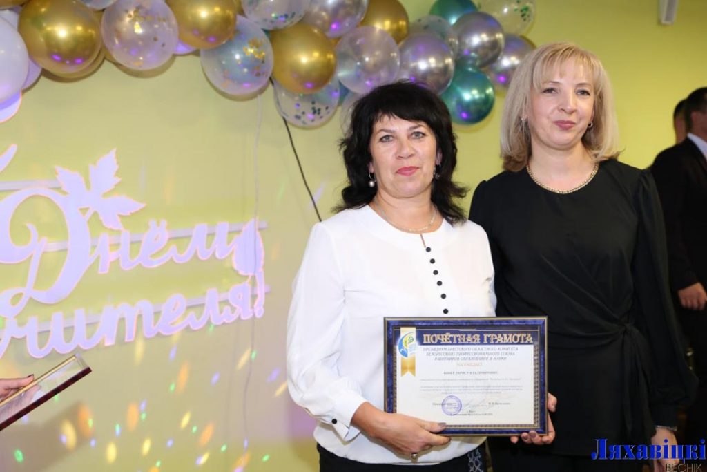 Намеснік старшыні райвыканкама Святлана Юрлевіч цёпла і шчыра ад імя райвыканкама і райсавета дэпутатаў павіншавала работнікаў сістэмы адукацыі раёна, ветэранаў педагагічнай працы і адзначыла, што самы галоўны ў школе – настаўнік: добры, сумленны, той, хто вельмі любіць сваіх выхаванцаў, аддае часцінку сябе, перадае веды і ўменні, выхоўвае патрыётаў сваёй Радзімы. Лепшым з лепшых Святлана Юрлевіч уручыла ўзнагароды. Ганаровай граматай галоўнага ўпраўлення па адукацыі Брэсцкага аблвыканкама адзначаны настаўнік матэматыкі гімназіі Паліна Белавус, дырэктар Жарабковіцкай СШ імя М. Г. Мінкевіча Вольга Бурак, намеснік дырэктара Конькаўскай СШ Іна Вайцешык і намеснік дырэктара гімназіі Аксана Гатоўчыц, галоўны спецыяліст аддзела па адукацыі райвыканкама Іна Зубік, настаўнік пачатковых класаў