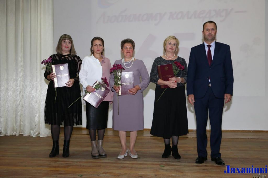 Старшыня галіновай пярвічкі Ірына Дубікоўская далучылася да агульных віншаванняў і ўручыла граматы супрацоўнікам каледжа. Дарэчы, сярод узнагароджаных на абласным урачыстым мерапрыемстве, прысвечаным Дню настаўніка, і дырэктар Ляхавіцкага аграрнага каледжа Ірына Прыступа-Юнік, якая адзначана Ганаровай граматай Брэсцкага абласнога камітэта Бела-