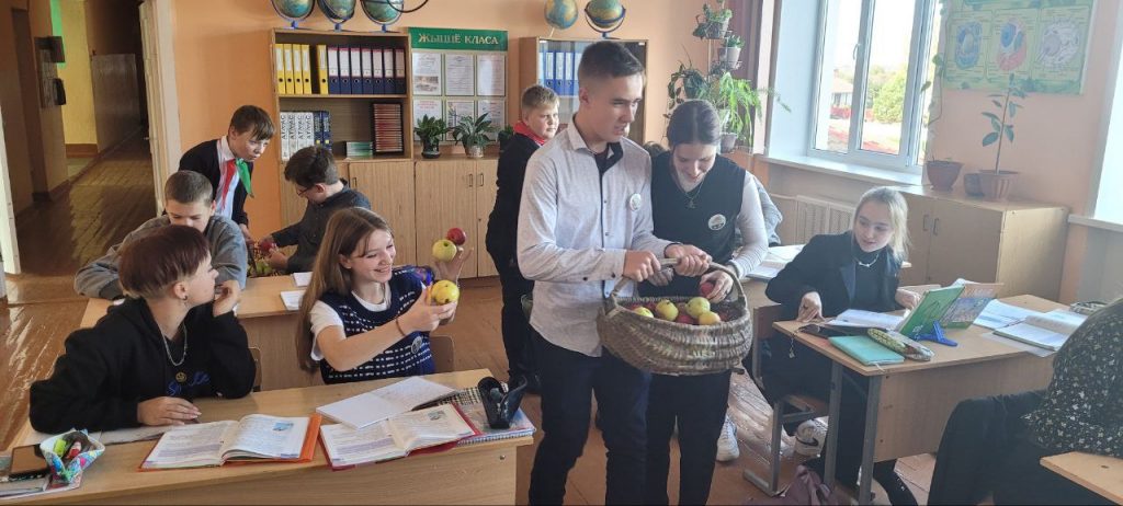 Собранные в ходе акции яблоки были розданы учащимся школы.