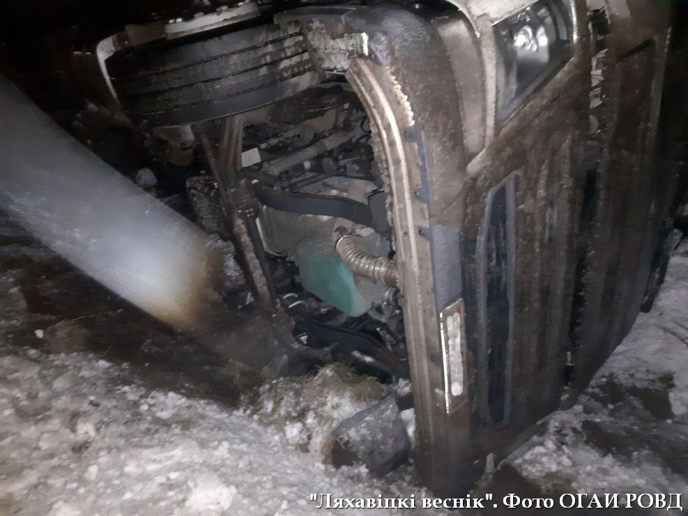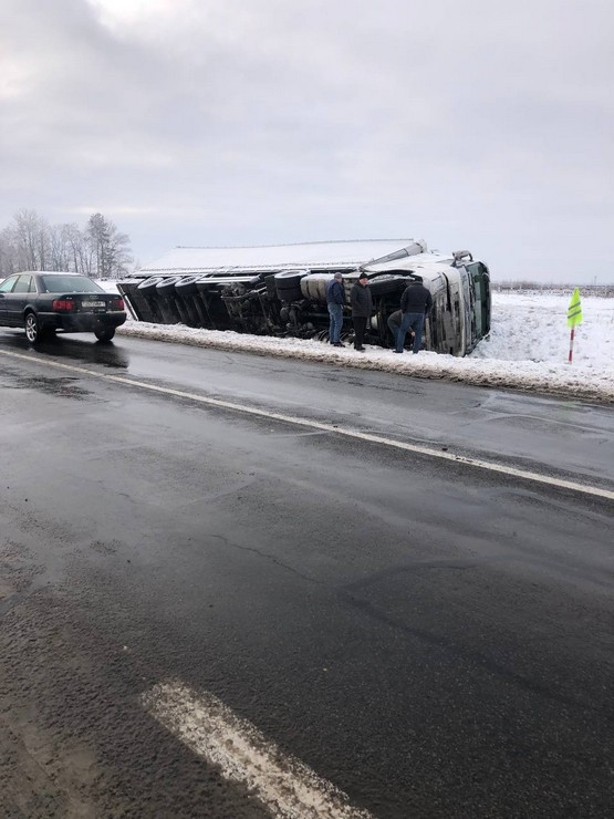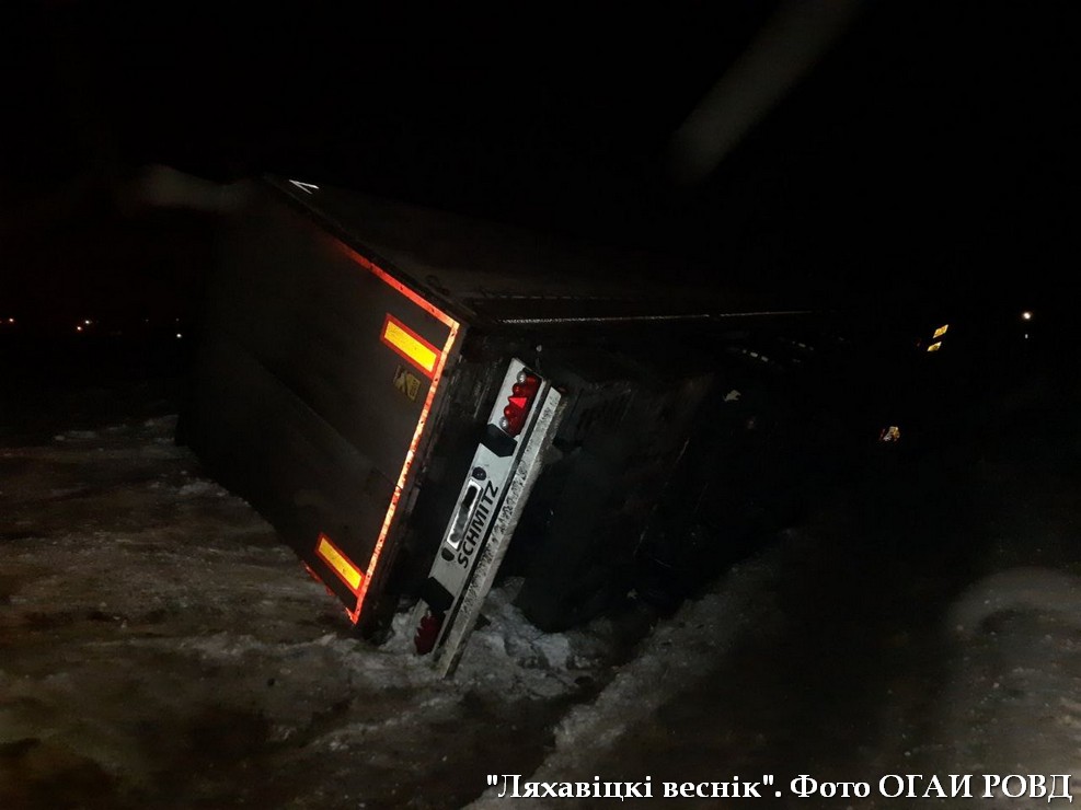 Водитель — житель города Барановичи, находясь за рулем грузового автомобиля «Volvo не учел погодные условия, не справился с управлением, и фура вылетела в кувет, где перевернулась. В аварии никто не пострадал, транспортное средство получило незначительные механические повреждения.