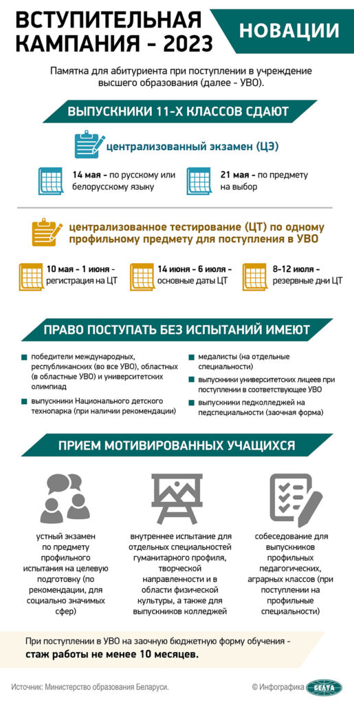 В том числе для выпускников учреждений общего среднего образования не будет необходимости при выборе учебного предмета для сдачи ЦЭ принимать во внимание, является этот предмет первым или вторым предметом профильного испытания при поступлении в учреждения высшего образования. Все это направлено на создание максимально удобных условий для абитуриентов.