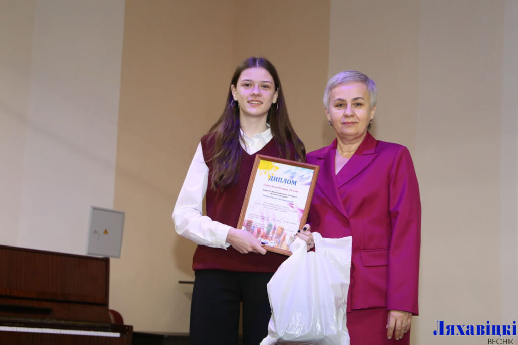 Диплом юной художнице вручила сегодня начальник управления по труду, занятости и социальной защите Ляховичского райисполкома Диана Тристень.