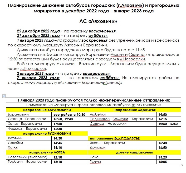 Навіны Как будет курсировать пригородный автобус в Ляховичском и других направлениях 26/12/2022 171 redakcyja